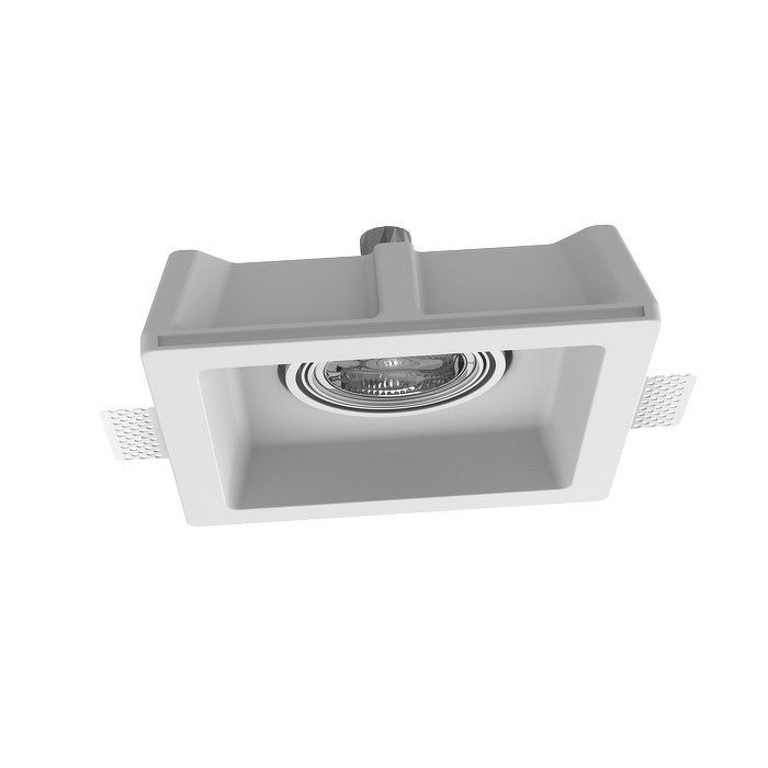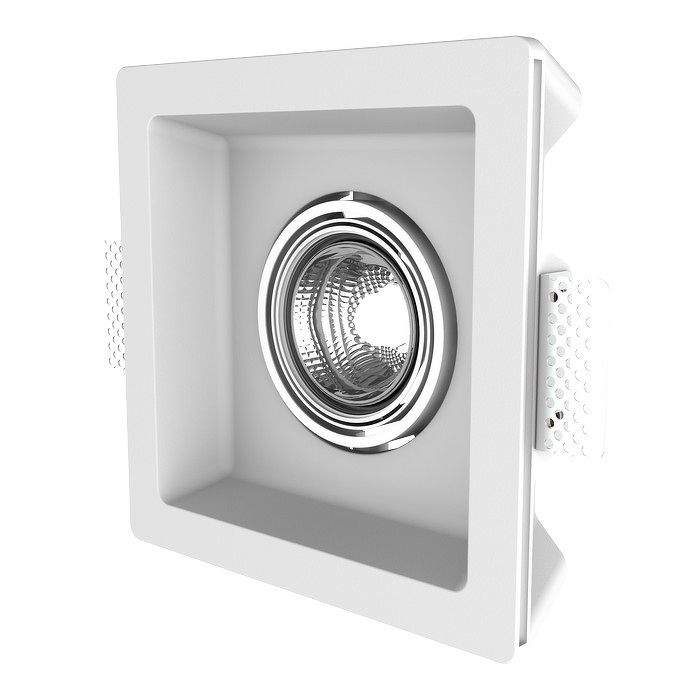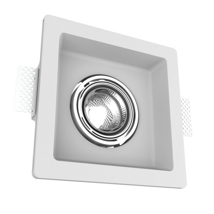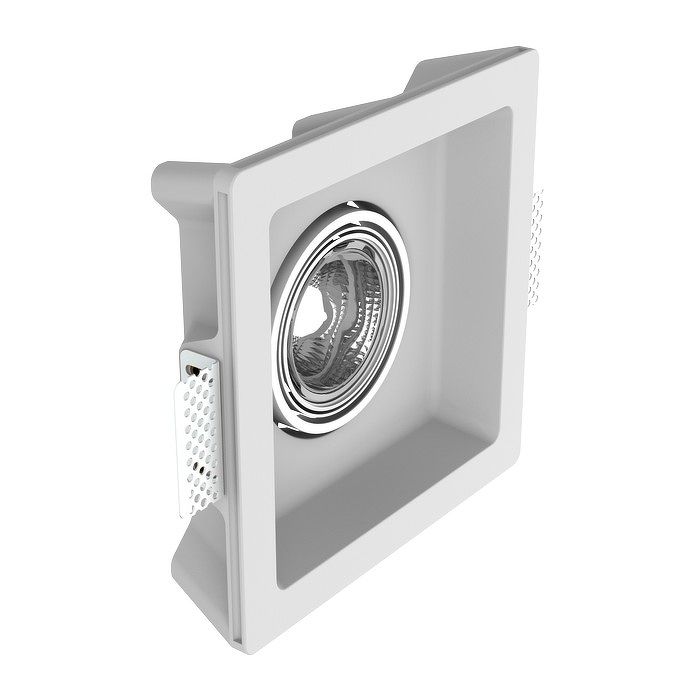 Sadrové svietidlo so štvorcovým otvorom. Bezrámčeková úprava. Svietidlá možno premaľovávať bežnou nástennou farbou. Montáž len do sadrokartónu.