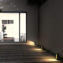 Vonkajšie stojanové svietidlo. Priestor pri svetelnom zdroji je lakovaný zlatistou farbou čo vytvára mäkké teplé svetlo.
