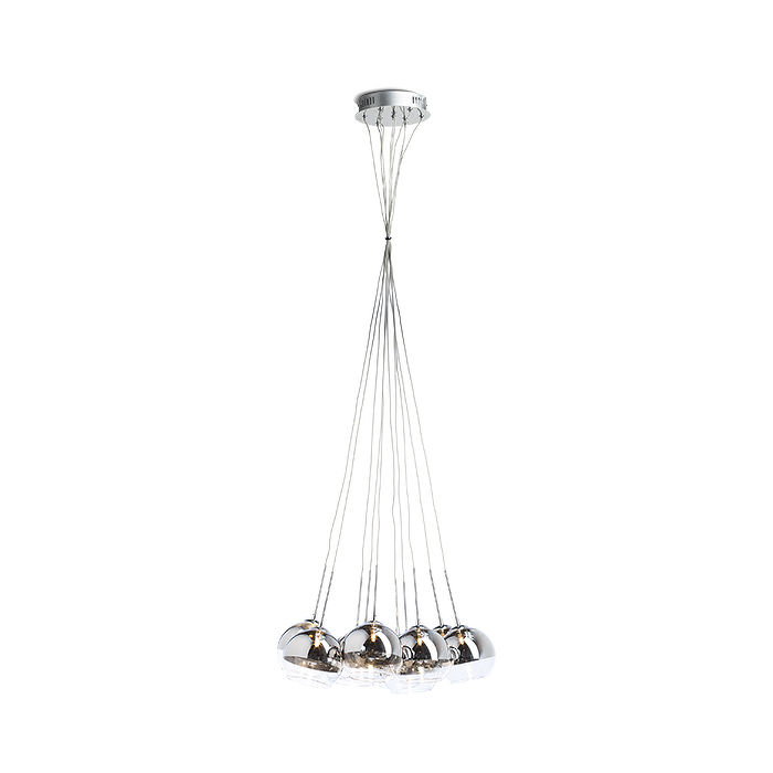 Dizajnové závesné svietidlo s tienidlami z dvojfarebného skla. Tienidlá je možné nastaviť do viacerých tvarov. Ozdobným chrómovým je možné ovplyvniť naklopenie tienidiel. Svietidlá sú dostupné v chrómovom , alebo medenom farebnom prevedení.
