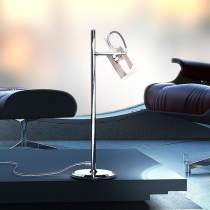 Stolná lampa so skleneným tienidlom. Tienidlo je náklopné v jednej osi.