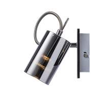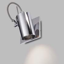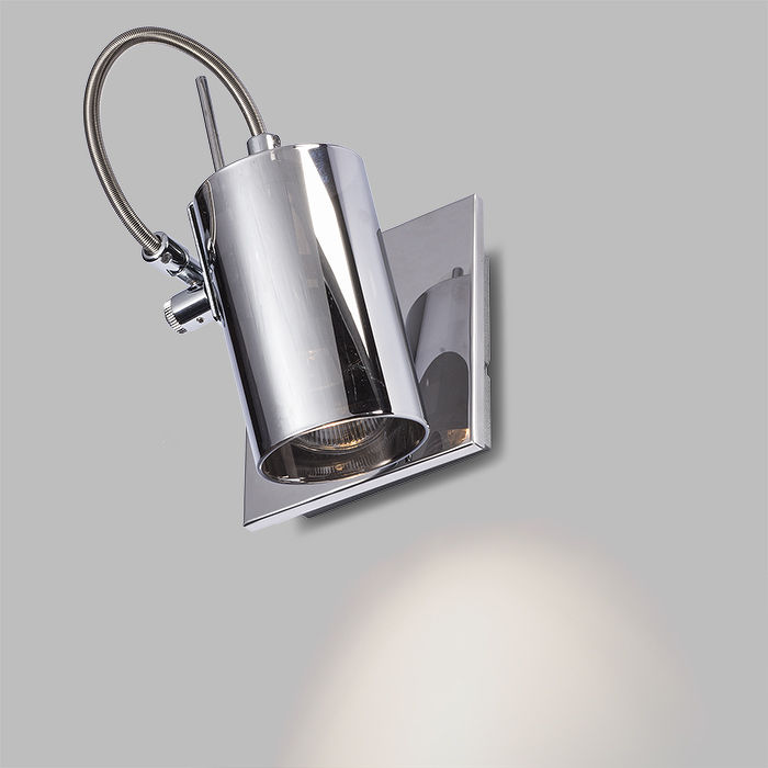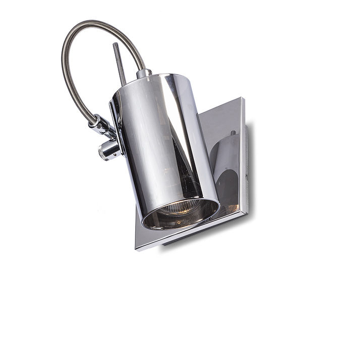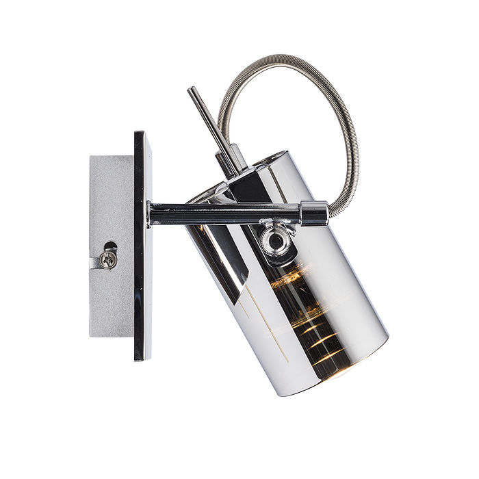 Nástenné svietidlo so skleneným tienidlom na chrómovej základni. Tienidlo je náklopné v jednej osi.