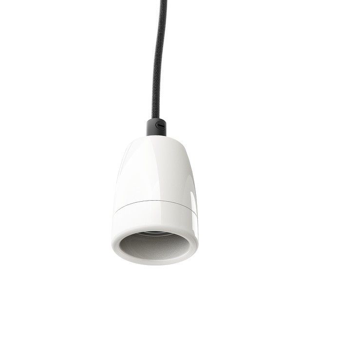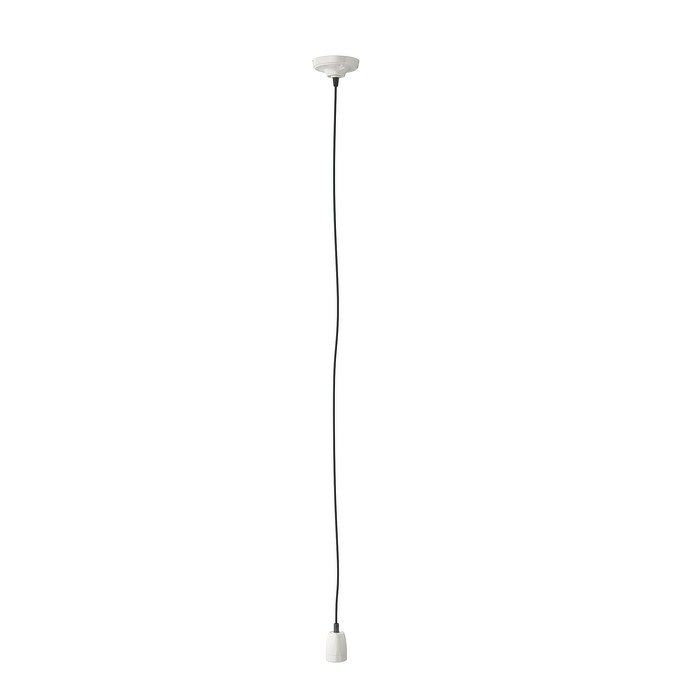Závesná sada s porcelánovou stropnou krytkou a paticou E27 na textilnom kábly. Rozmery keramickej patice priemer/V 4,5/6 cm.
