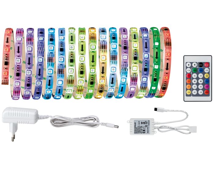 LED pás , v bielej farbe , dlhý 5 metrov. LED pás svieti aj farebne.