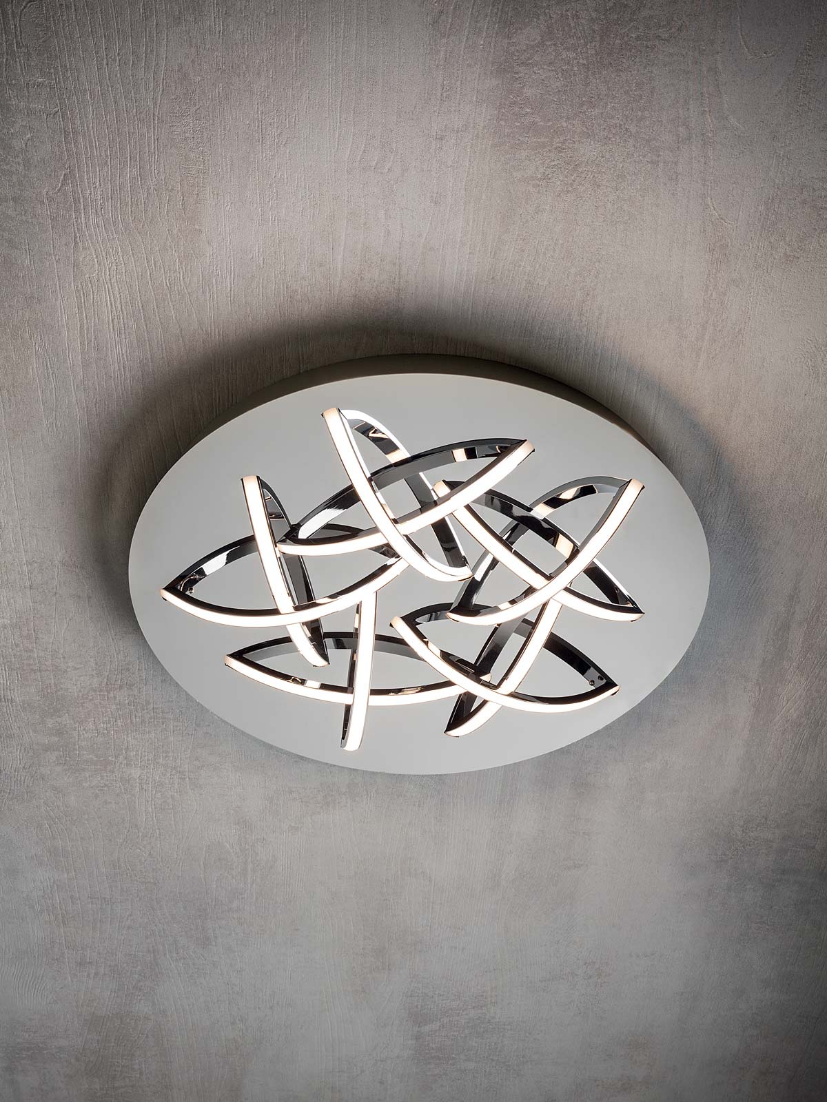 Stropné a nástenné svietidlá zo série Kink ,v rovnakom dizajne, majú akrylový difúzor a chrómovú kovovú konštrukciu. Svietidlá krásne doladia, akúkoľvek miestnosť, kde sa budú nachádzať a vnesú do nej štýl, so svojím jedinečným dizajnom.