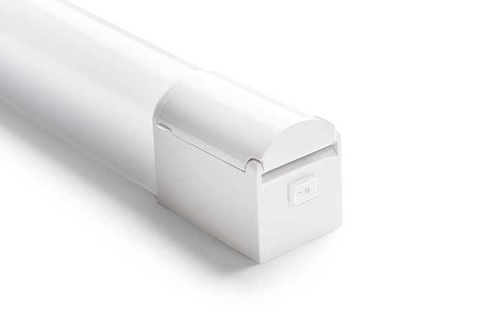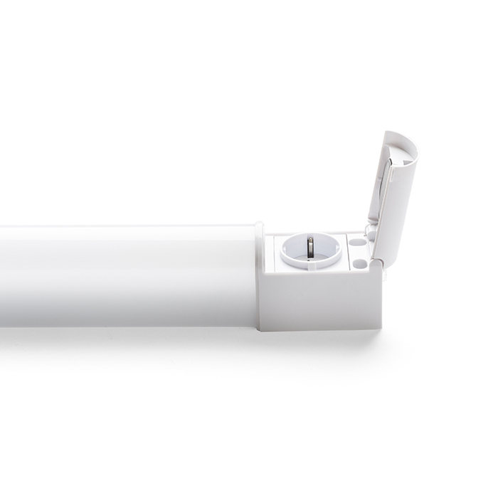 LED svietidlo vhodné do kúpeľne s integrovanou zásuvkou pre spotrebiče s nízkym odberom max. 100W.
