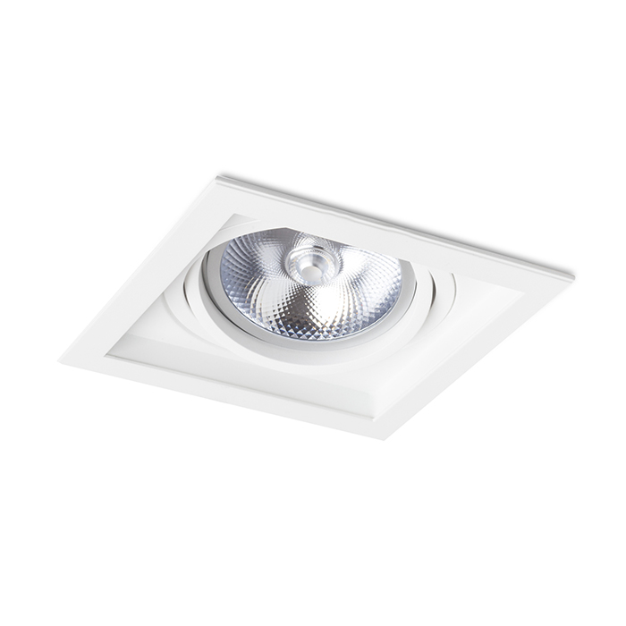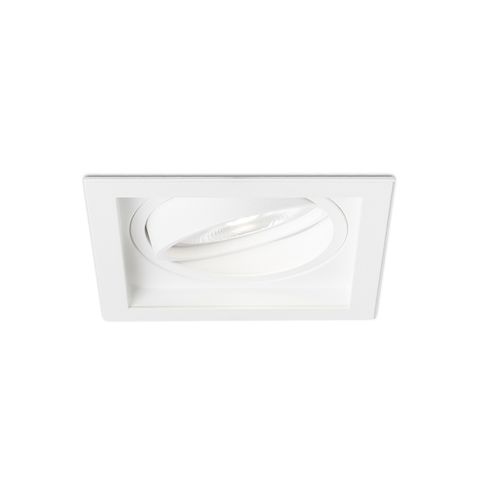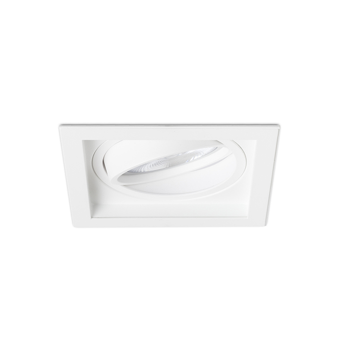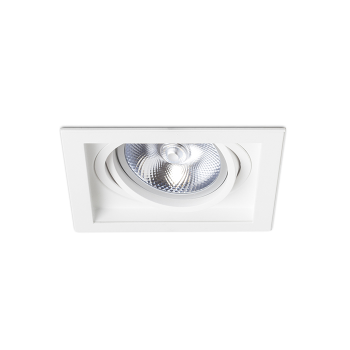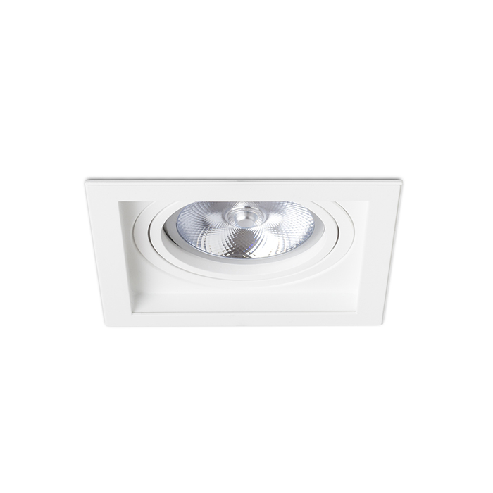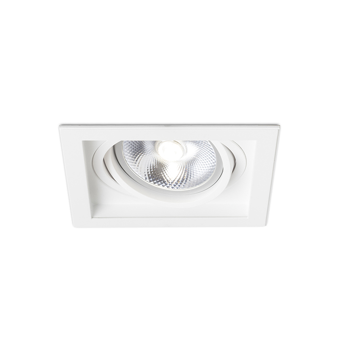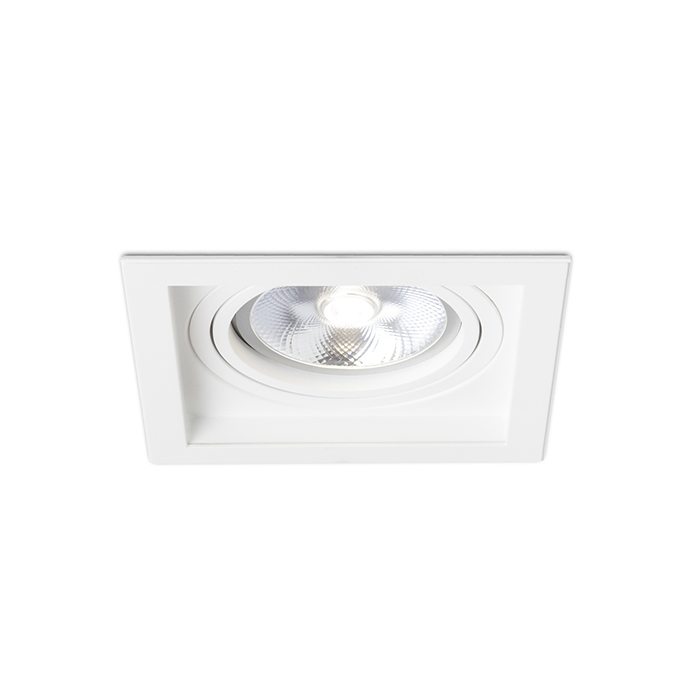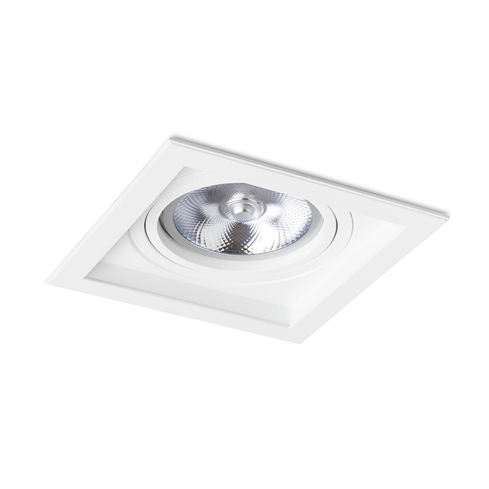 Zápustné štvorcové masívne hliníkové svietidlo v lakovanom prevedení s možnosťou naklopenia pre žiarovku s paticou G53.