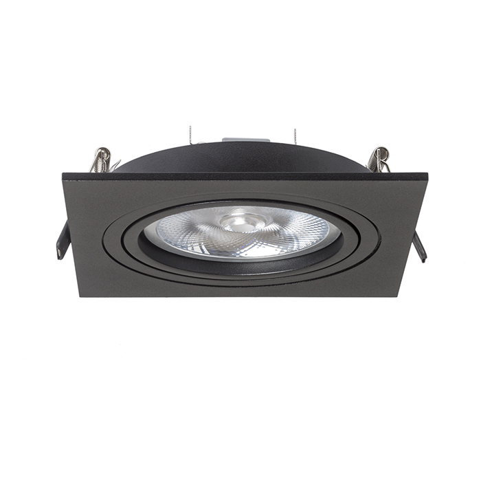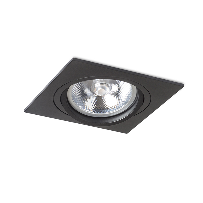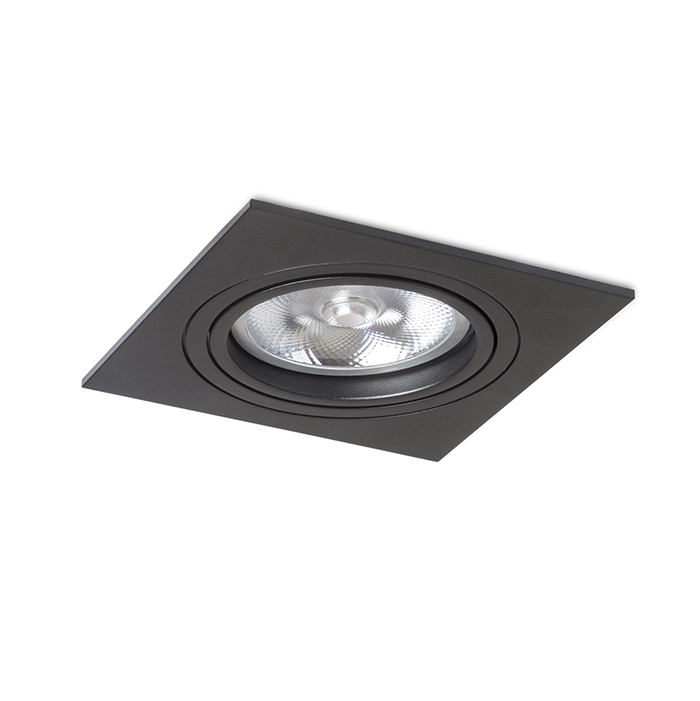Zápustné štvorcové svietidlo v hliníkovom prevedení s povrchovou úpravou prírodný alebo lakovaný hliník, s možnosťou naklopenia pre žiarovku s paticou G53.