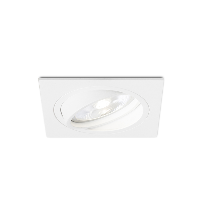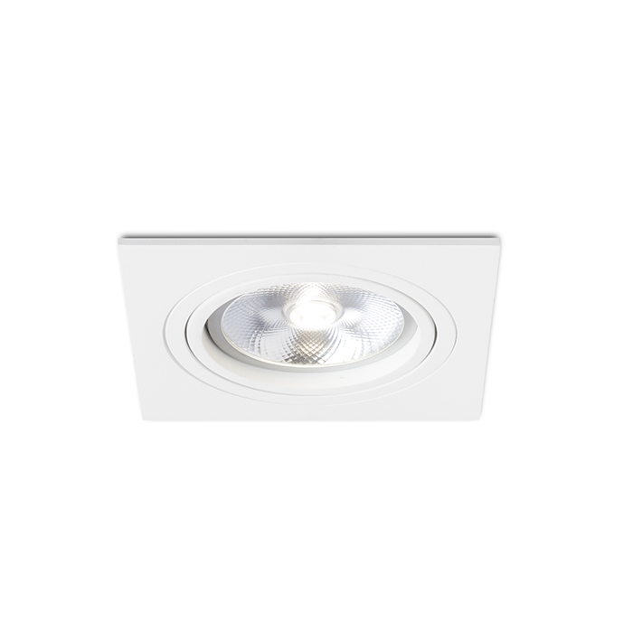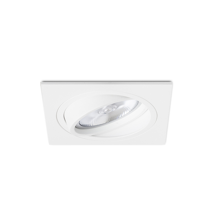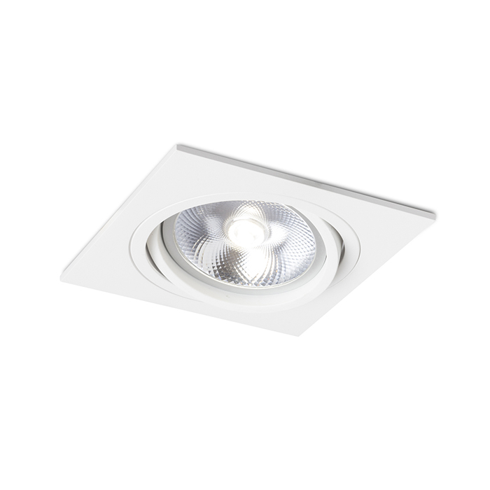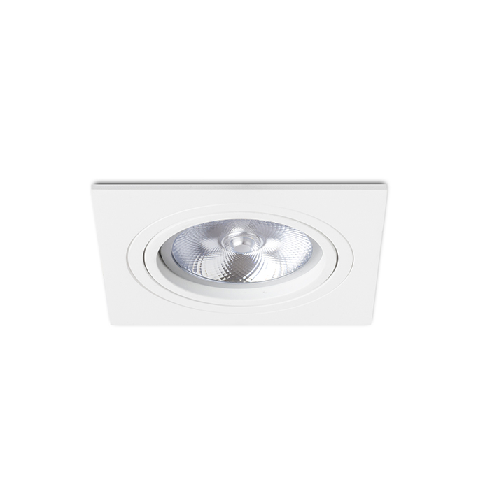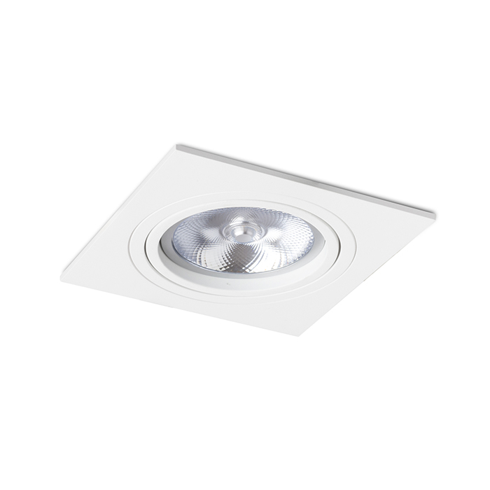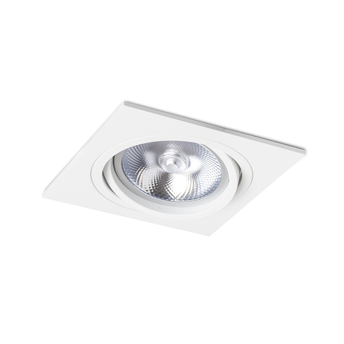Zápustné štvorcové svietidlo v hliníkovom prevedení s povrchovou úpravou prírodný alebo lakovaný hliník, s možnosťou naklopenia pre žiarovku s paticou G53.