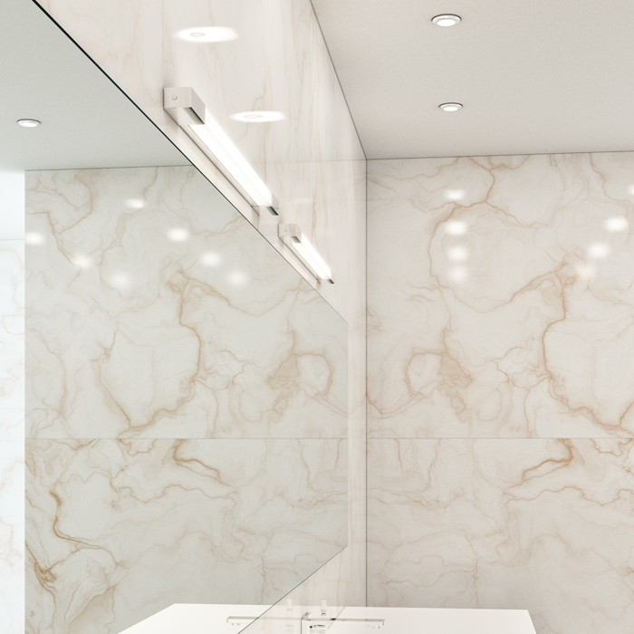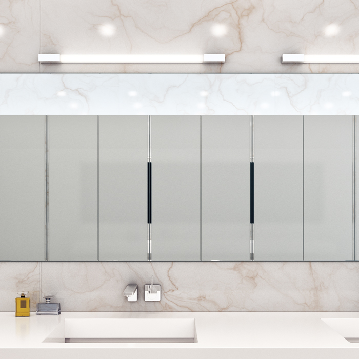 Nástenné lineárne kúpeľňové LED svietidlo s chrómovými koncovkami. Vhodné pre použitie do vlhkého prostredia.