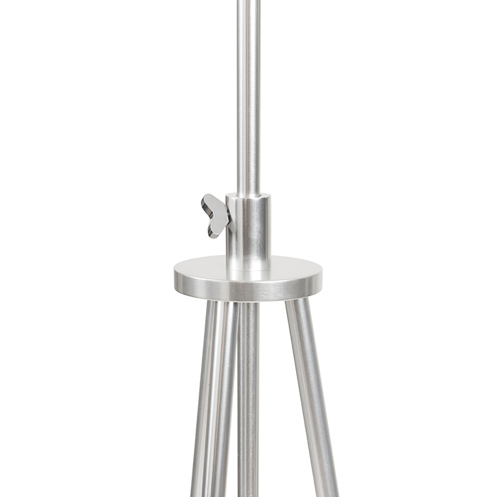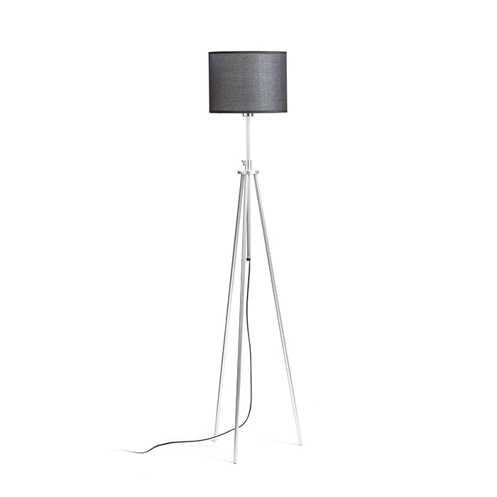 Stojanová lampa na trojnožke s možnosťou výškového nastavenia a textilným tienidlom na žiarovku s päticou E27.