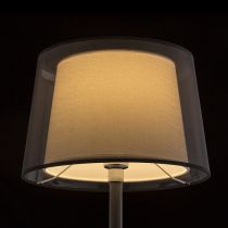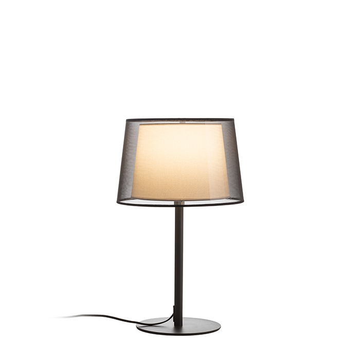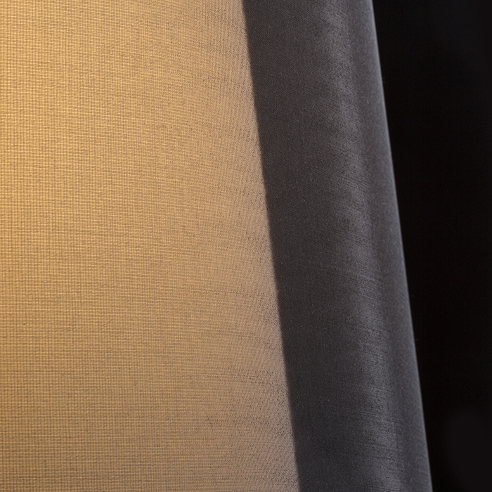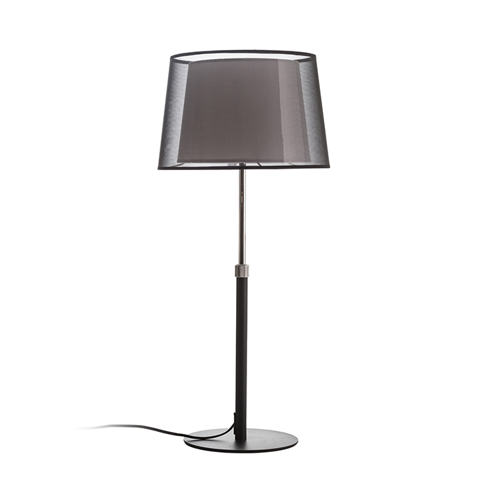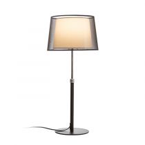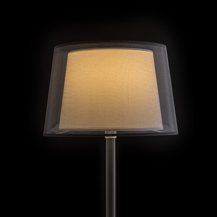 Textilné svietidlá zo série ESPLANADE, nájdete v stolovej, stojanovej a závesnej variante, v rovnakom dizajne, Svietidlá zaujmú dvojitým tienidlom.Stolná lampa má teleskopickú nohu pre nastavenie výšky svietidla.