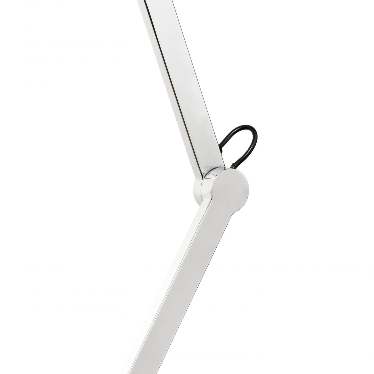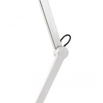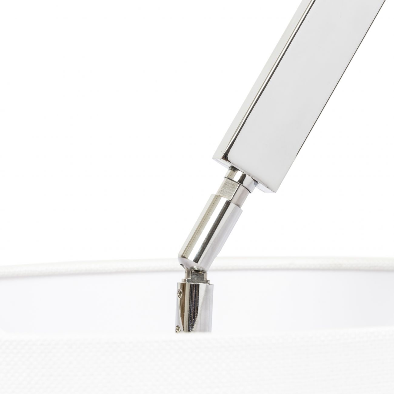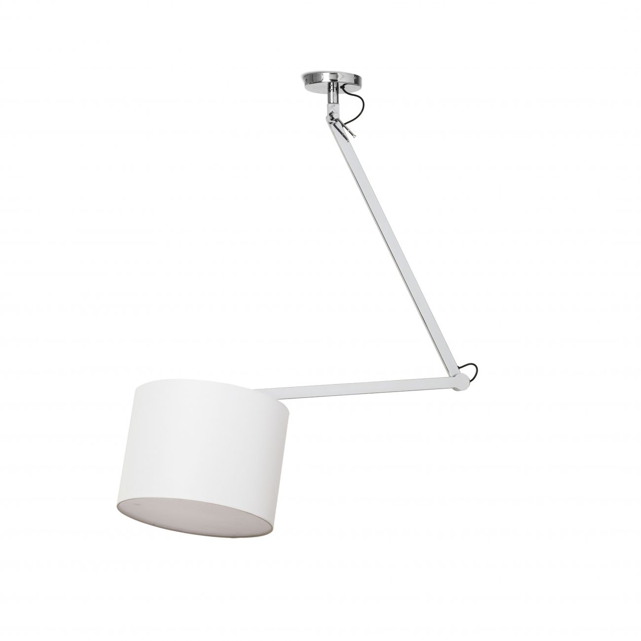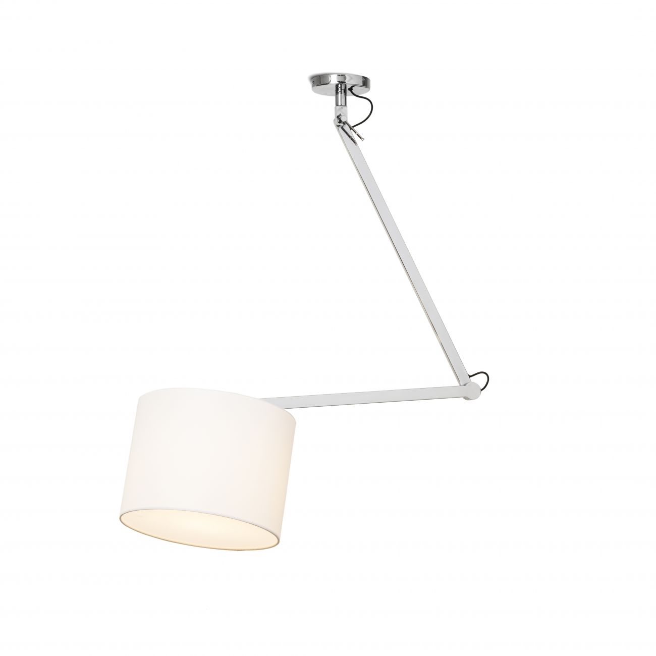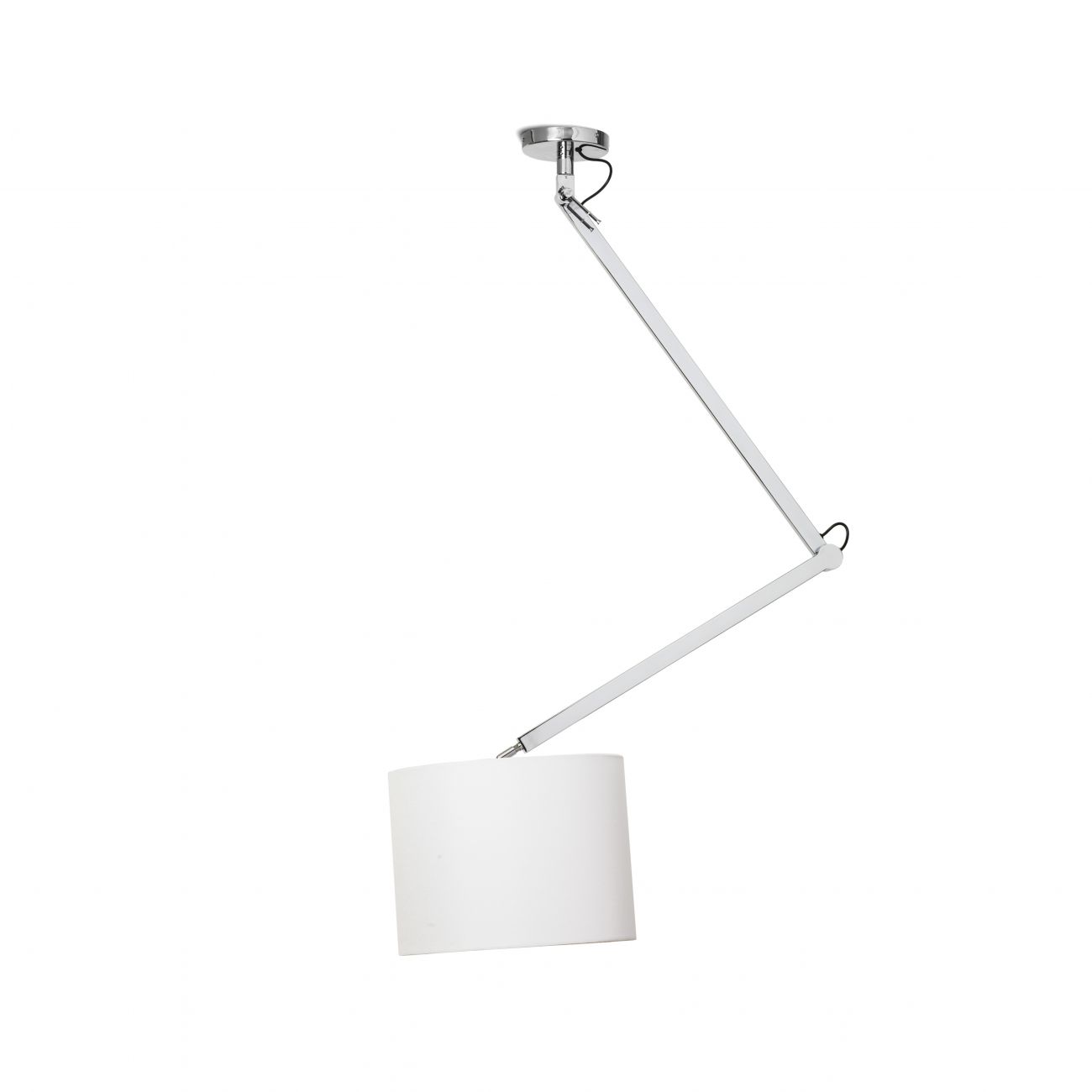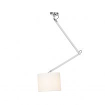 Stropná dvojramenná polohovateľná lampa s textilným tienidlom.