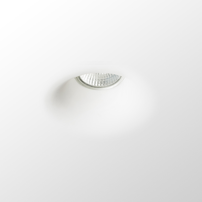 Sadrové svietidlo s kruhovým otvorom. Bezrámčeková úprava. Svietidlo je možné premaľovať interiérovými farbami. Montáž len do sadrokartónu.