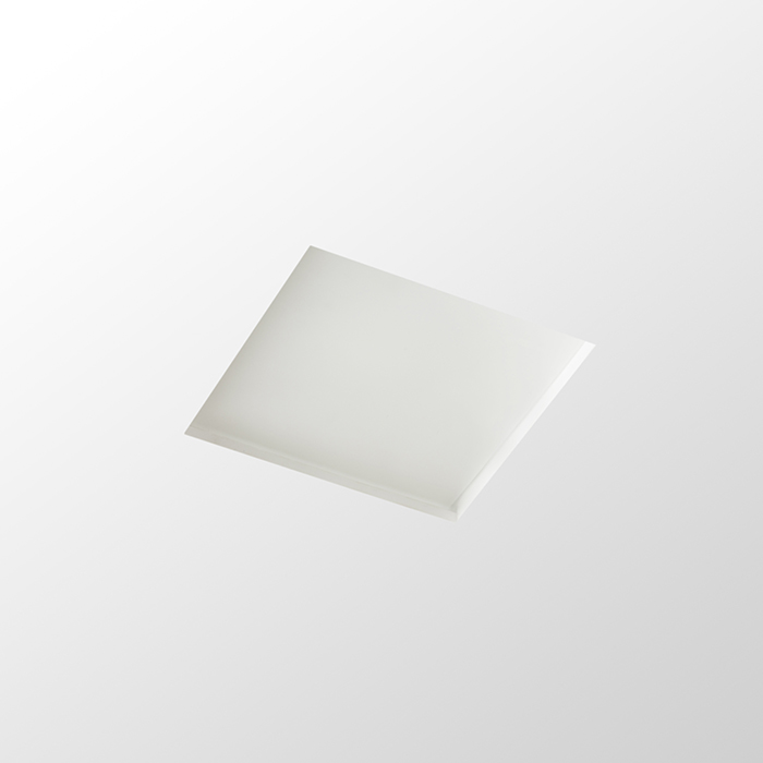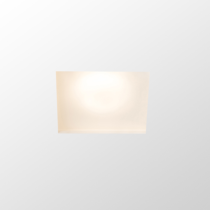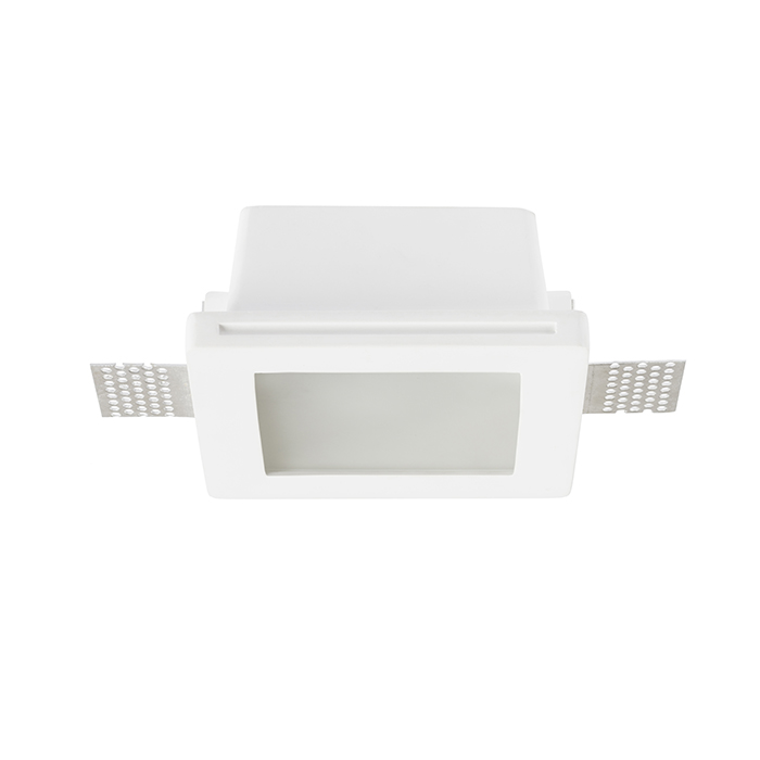 Zápustné sadrové štvorcové svietidlo so satinovaným krycím sklom pre svetelný zdroj s paticou GU10. Bezrámčeková úprava. Montáž len do sadrokartónu.