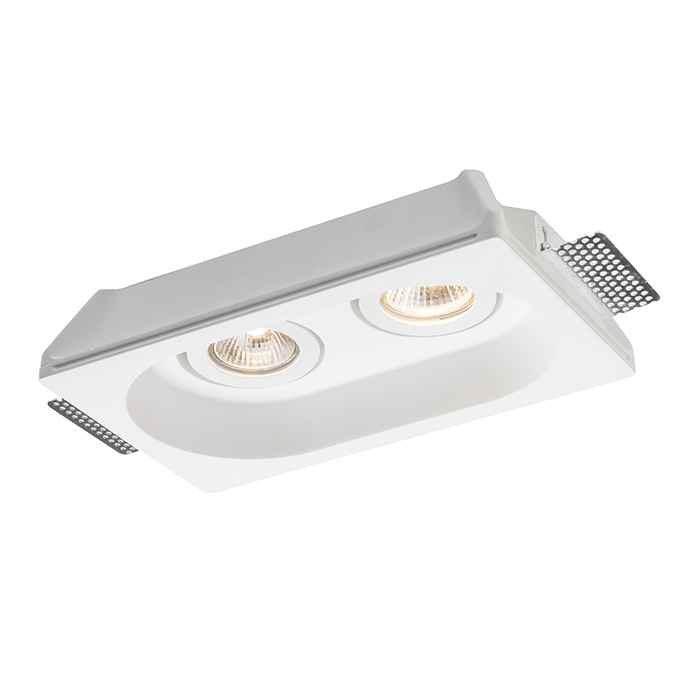 Sadrové svietidlo so štvorcovým otvorom a bezrámčekovou úpravou. Svietidlo je možné premalovať bežnou nástennou farbou. Montáž len do sádrokartónu.