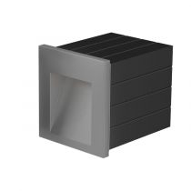 Zápustné hranaté svietidlo do steny vhodné pre vonkajšie a aj vnútorné použitie v troch farebných prevedeniach. Dodávané vrátane montážneho boxu. Inštalácia len so svietením dole.