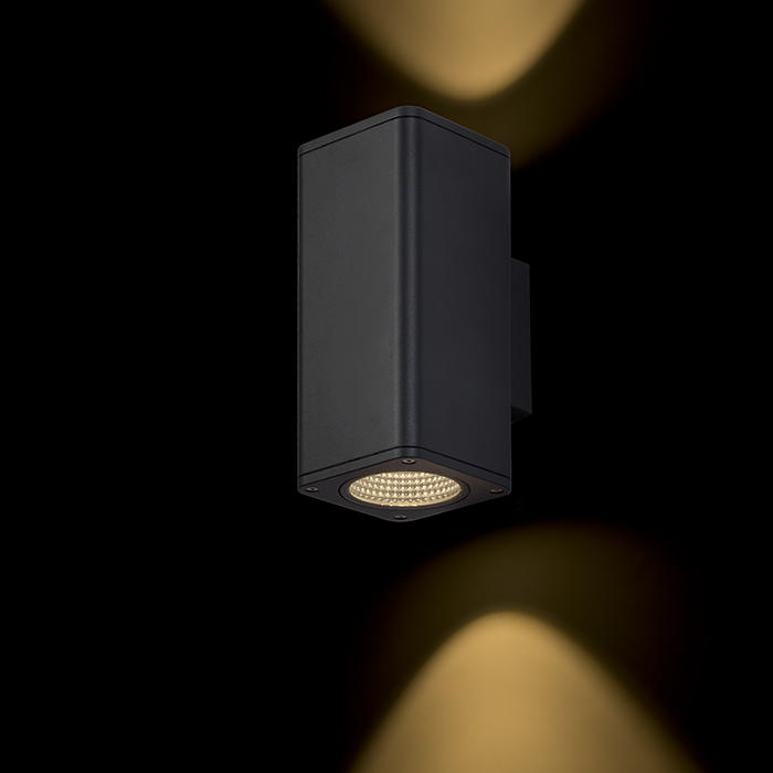 Vonkajšie UP / DOWN nástenné svietidlo osadené dvomi 12W LED diódami.