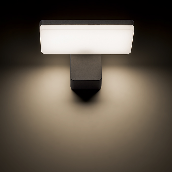 Vonkajšie LED nástenné svietidlo, so svietením dole z tlakovo liateho hliníka. Opálový spodný kryt.
