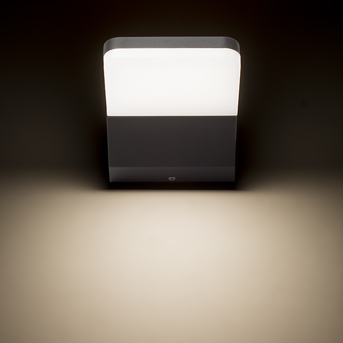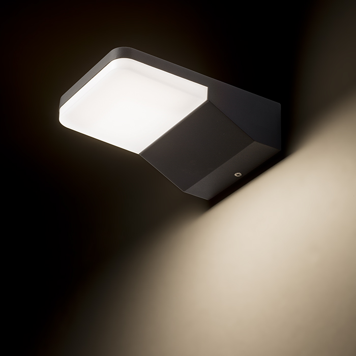 Vonkajšie LED nástenné svietidlo, so svietením dole z tlakovo liateho hliníka. Opálový spodný kryt.