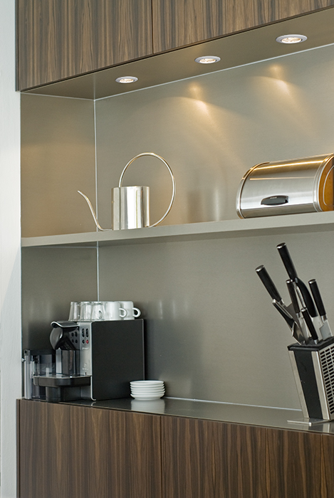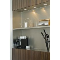 Kruhové náklopné svietidlo v kovovom prevedení s povrchovou úpravou lesklého chrómu, matného niklu a biele lakované.