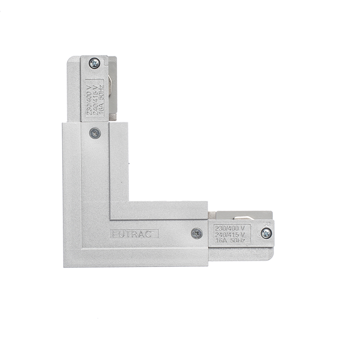 L-spoj s možnosťou napájania pre trojokrúhovú lištu EUTRAC.Možnosť zaťažiť maximálne 16A.