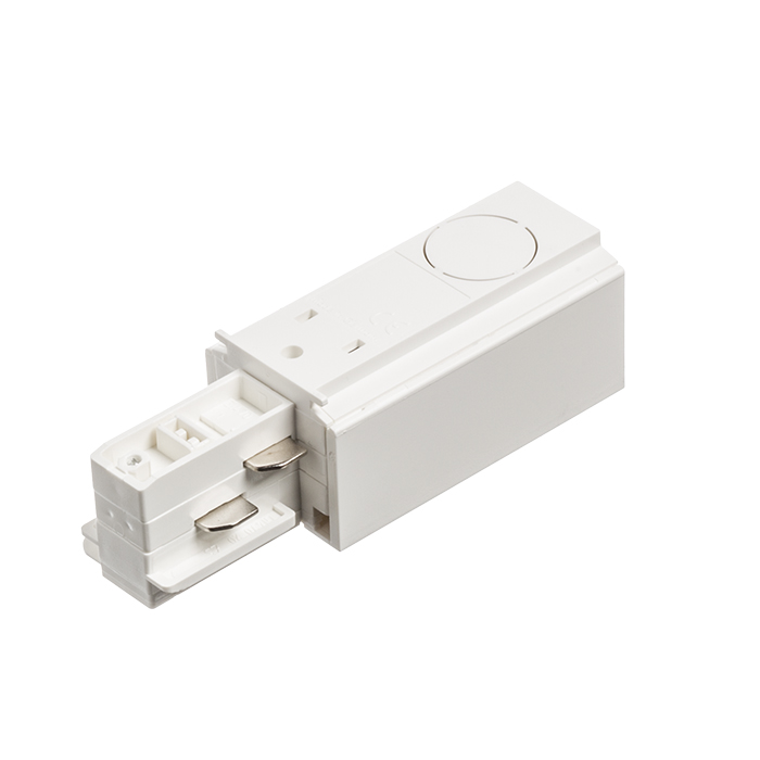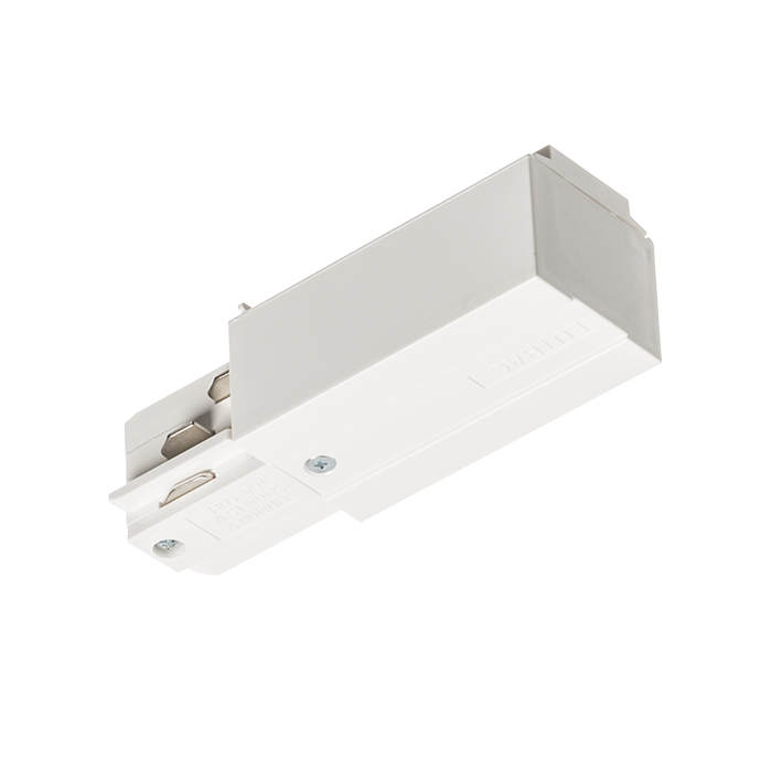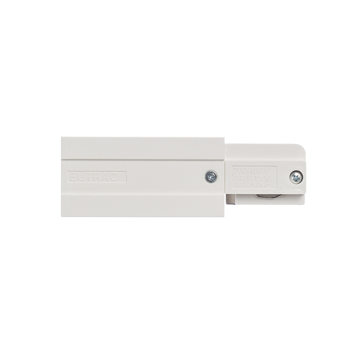 Koncové napájanie pre prisadenú / závesnú trojokrúhovú lištu EUTRAC. Možnosť zaťažiť maximálne 16A.