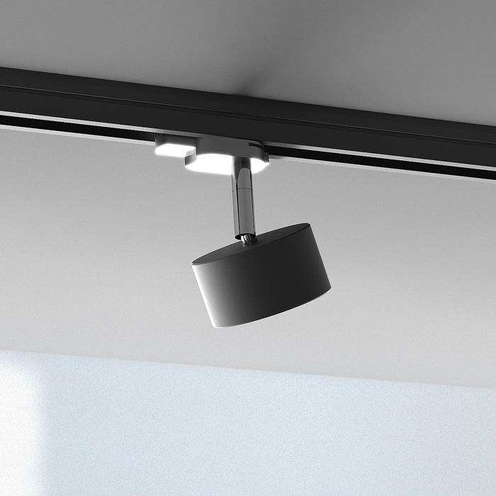 Náklopné hliníkové svietidlo s adaptérom pre trojokruhovú lištu v troch farebných prevedeniach. Svietidlo je určené pre úsporný LED zdroj s päticou GX53.