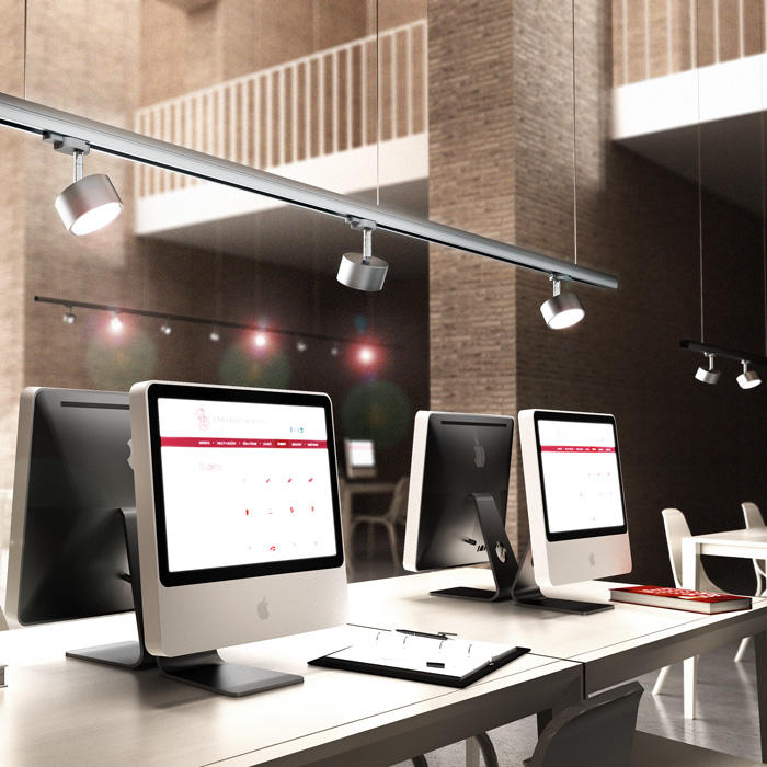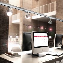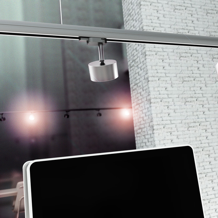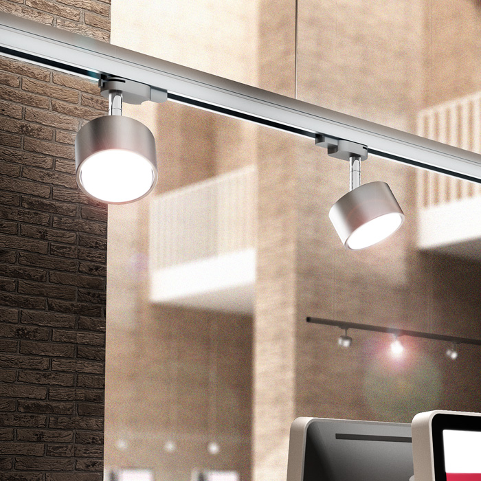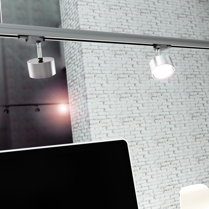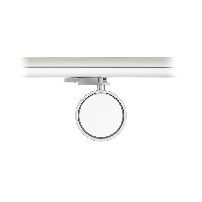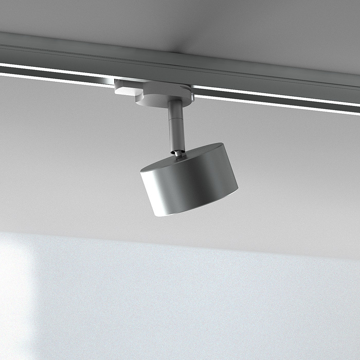 Náklopné hliníkové svietidlo s adaptérom pre trojokruhovú lištu v troch farebných prevedeniach. Svietidlo je určené pre úsporný LED zdroj s päticou GX53.